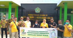 Tembilahan, JurnalTerkini.id – Rangkaian HUT ke-19, puluhan anggota Angkatan Muda Partai Golkar (AMPG ) Indragiri Hilir (Inhil) melakukan penyemprotan disinfektan di sekolah yang akan melaksanakan belajar tatap muka pada Senin (15/2/2021).