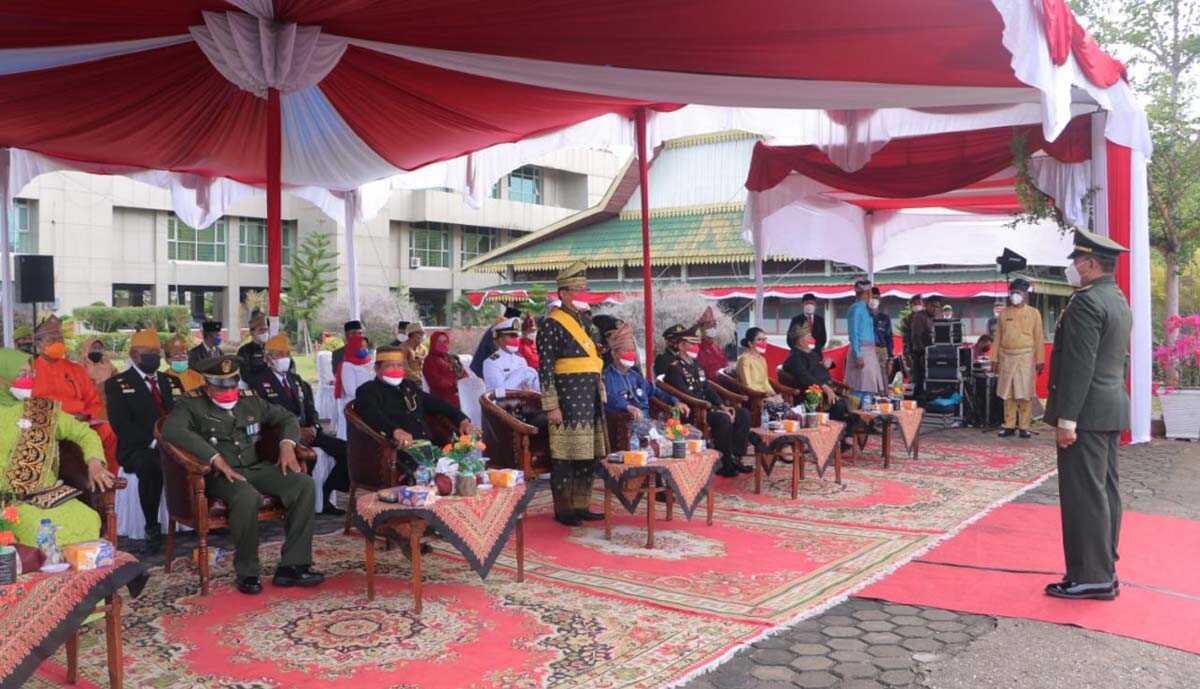 Ketua Dewan Perwakilan Rakyat Daerah (DPRD) Kabupaten Indragiri Hilir, Dr H Ferriyandi yang diwakili oleh Wakil Ketua III DPRD Inhil Andi Rusli mengikuti upacara peringatan Hari Ulang Tahun (HUT) Republik Indonesia (RI) ke-76 di Lapangan kantor bupati, Jalan Akasia Tembilahan, Selasa (17/8/21).