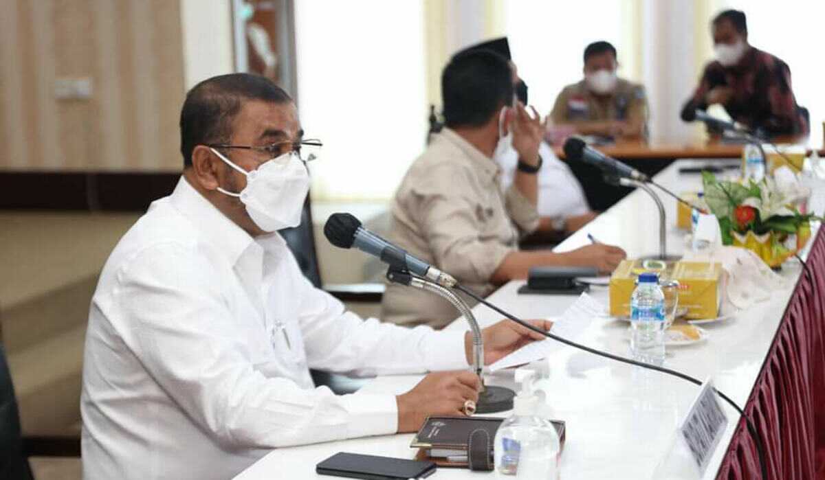 Bupati Karimun bpk Dr. H. Aunur Rafiq, M.Si memimpin Rapat Evaluasi Penanganan Covid-19 Kabupaten Karimun di Gedung Nasional, Senin (17/05/2021).