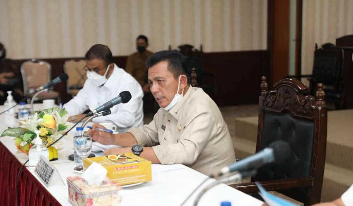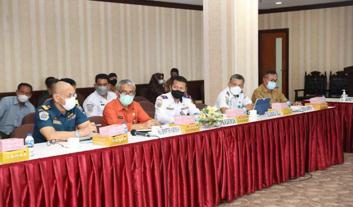 Bupati Karimun Dr. H. Aunur Rafiq, M.Si memimpin Rapat Koordinasi Percepatan Pembangunan Bandara Kabupaten Karimun di Ruang Rapat Cempaka Putih Kantor Bupati Karimun, Senin (24/05/2021).