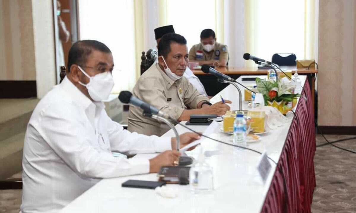Bupati Karimun Dr. H. Aunur Rafiq, M.Si menghadiri Rapat Koordinasi Percepatan Pembangunan Bandara Raja Haji Abdullah dan Pelabuhan Malarko bersama Gubernur Kepri di Graha Kepri Kota Batam, Senin (25/05/2021).