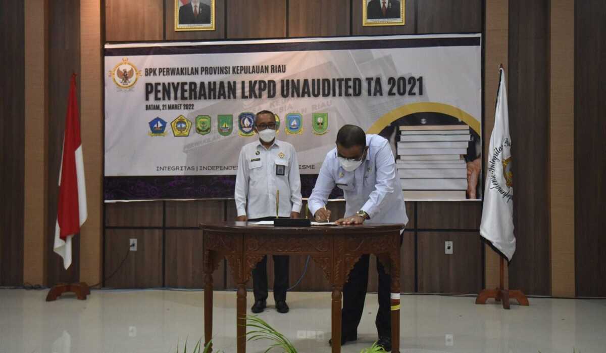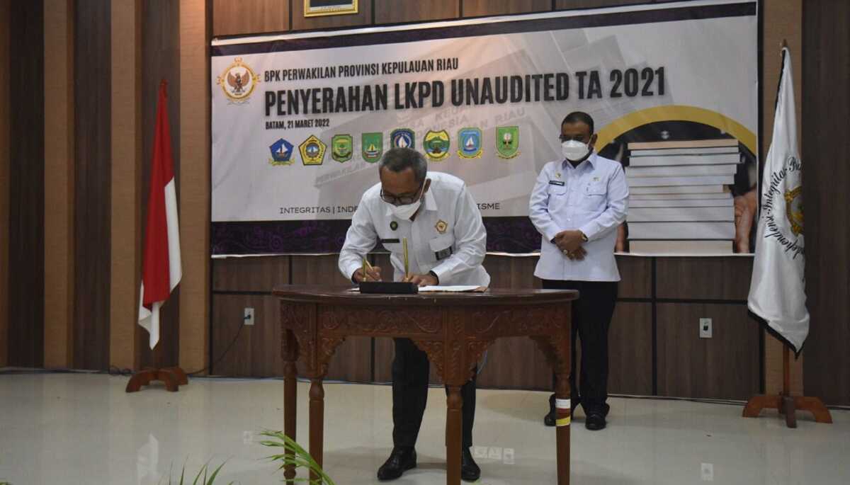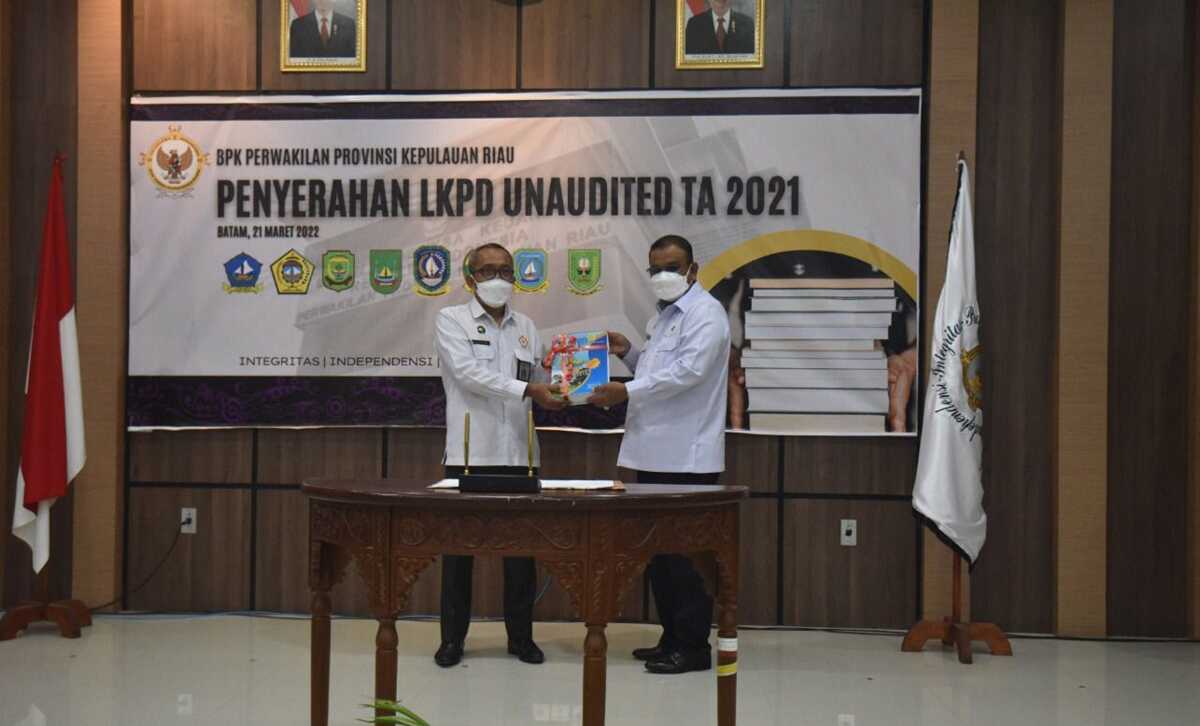 LKPD 2021 diserahkan langsung oleh Bupati Karimun Dr H Aunur Rafiq, S.Sos M.Si yang ditandai dengan penandatanganan berita acara dan serah terima.