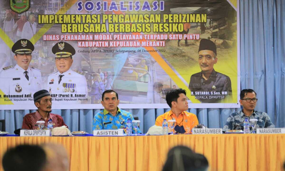 Hal itu disampaikan Bupati Kepulauan Meranti H. Muhammad Adil, SH, MM saat membuka secara virtual Sosialisasi Implementasi Pengawasan Perizinan Berusaha Berbasis Beresiko. Kegiatan yang diikuti oleh para pengusaha itu ditaja oleh Dinas Penanaman Modal Pelayanan Terpadu Satu Pintu (DPMPTSP) di Gedung Afifa Selatpanjang, Kamis (8/11/2022).
