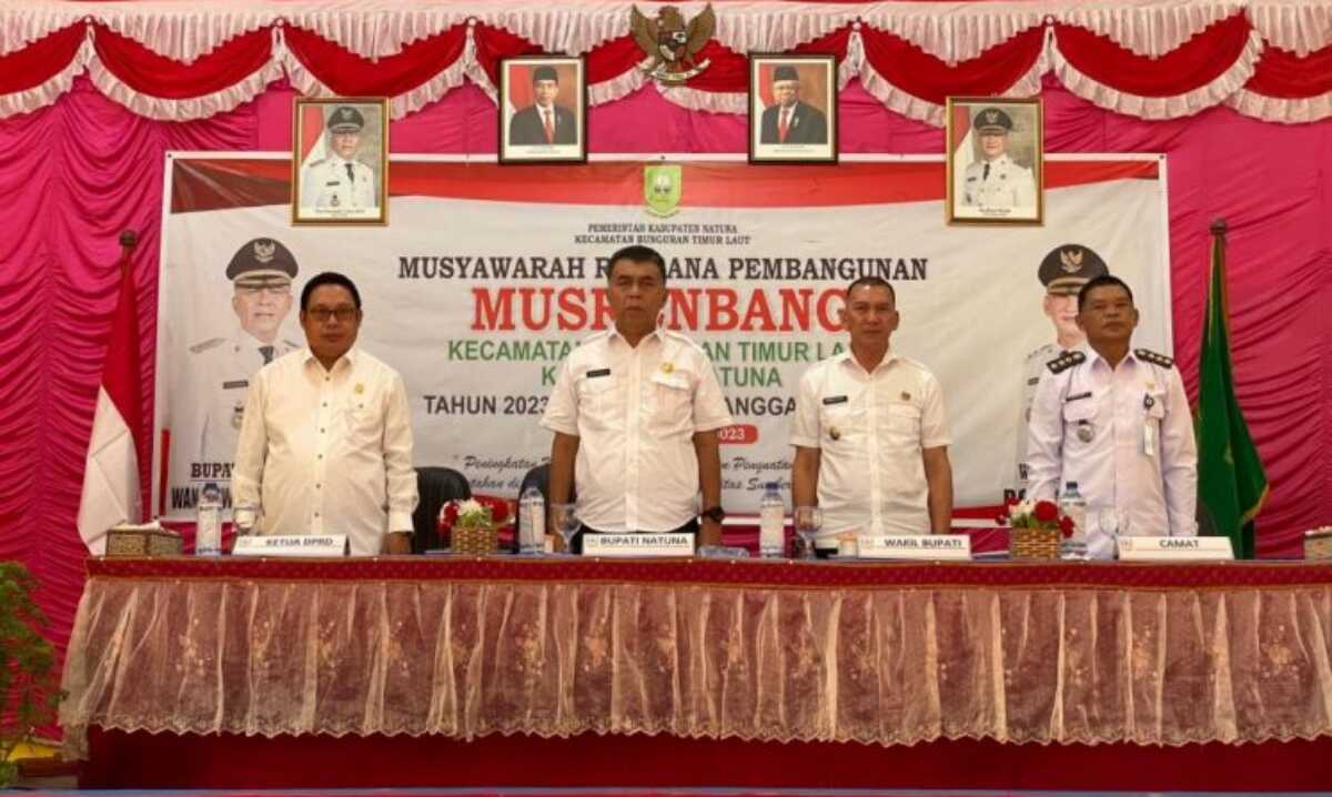 Natuna, JurnalTerkini.id – Bupati Natuna, Wan Siswandi didampingi Wakil Bupati dan Ketua Dewan Perwakilan Rakyat Daerah (DPRD) Natuna, Daeng Amhar secara resmi membuka Musyawarah Rencana Pembangunan Tingkat Kecamatan. Bertempat di Aula Kantor Camat Bunguran Timur Laut Kabupaten Natuna. Rabu 8 Februari 2023.