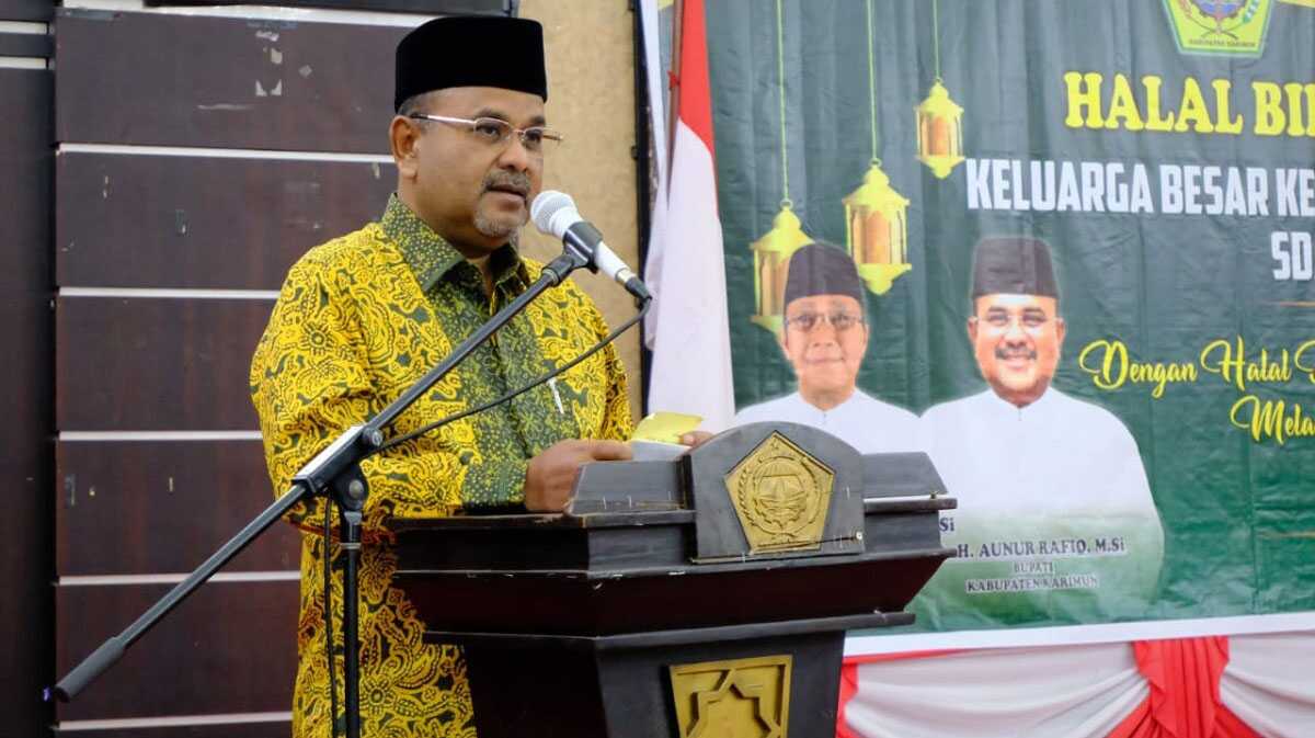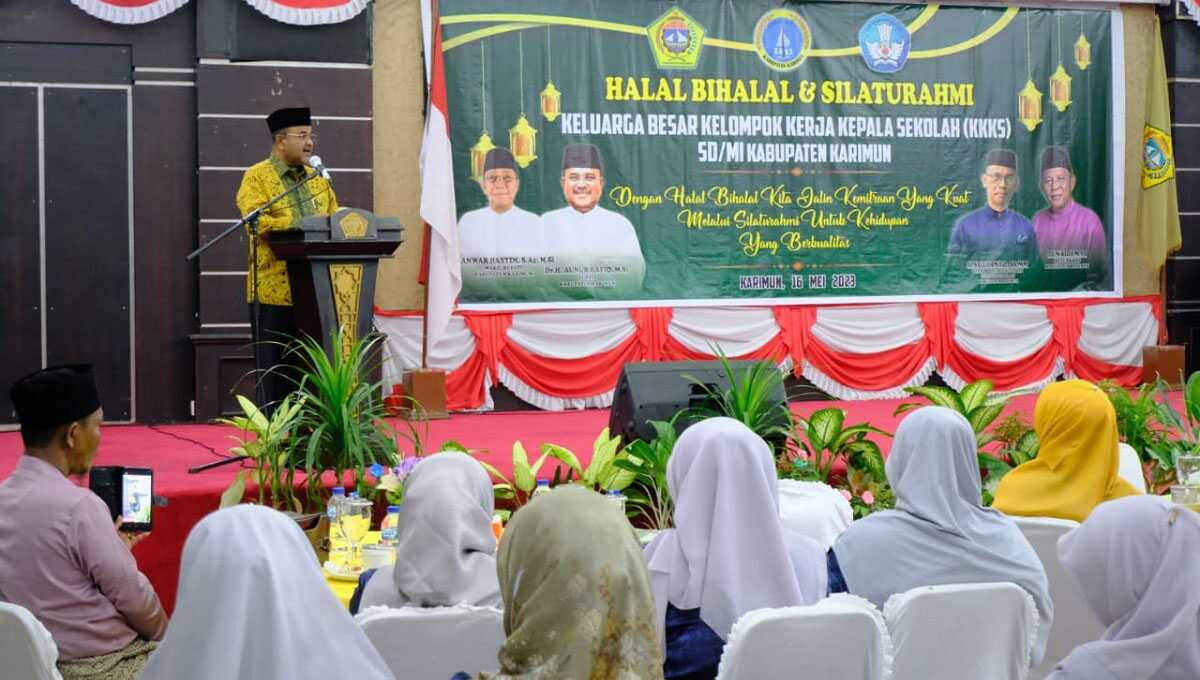 BUPATI Karimun, Dr. H. Aunur Rafiq, S.Sos., M.Si bersama Sekretaris Daerah Kabupaten Karimun Dr. Muhammad Firmansyah., M.Si., menghadiri acara Halal Bihalal dan Silaturahmi Keluarga Besar Kelompok Kerja Kepala Sekolah (KKKS) SD/MI se-Kabupaten Karimun di Gedung Nasional, Selasa 16/05/23.