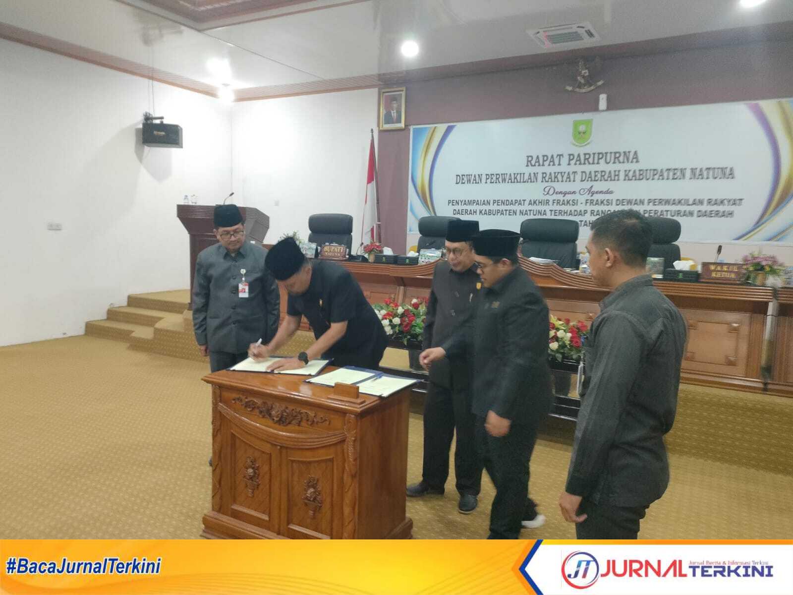 Selanjutnya Bupati Natuna dan Pimpinan DPRD menandatangani persetujuan bersama dan menyetujui Rancangan Peraturan Daerah Tahun Anggaran 2024 menjadi Peraturan Daerah Kabupaten Natuna untuk selanjutnya ranperda akan disampaikan kepada Gubernur Kepulauan Riau untuk dievaluasi dan ditetapkan menjadi Perda. (Ron)