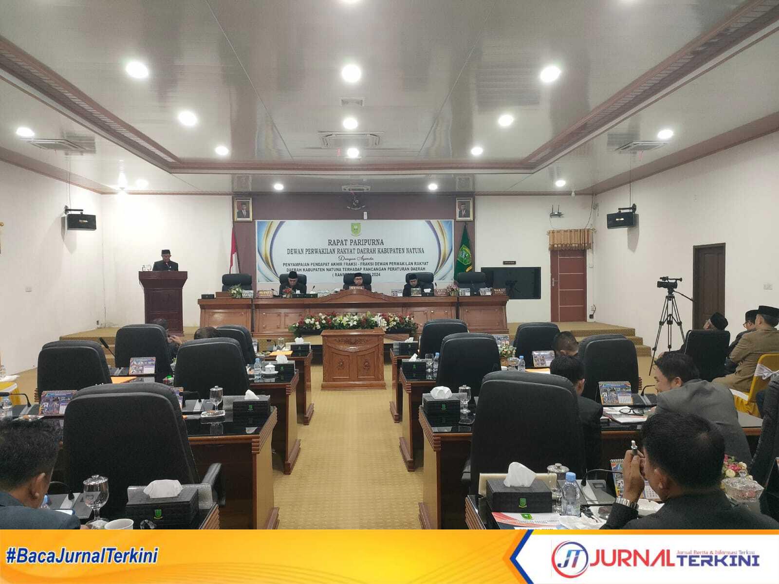 Dari lima fraksi DPRD Natuna yakni Fraksi Partai PAN, Fraksi Partai Golkar, Fraksi Partai Gerindra, Fraksi PPDN (Partai Pemersatunya Damai Natuna), serta Fraksi PNR (Perjuangan Nurani Rakyat) menerima dan menyetujui Rancangan Peraturan Daerah Tahun Anggaran 2024 yang terdiri atas satu Rancangan Peraturan Daerah Kabupaten Natuna tentang rencana pembangunan industri Kabupaten Natuna tahun 2024-2044 dan lima pencabutan Peraturan Daerah Kabupaten Natuna.