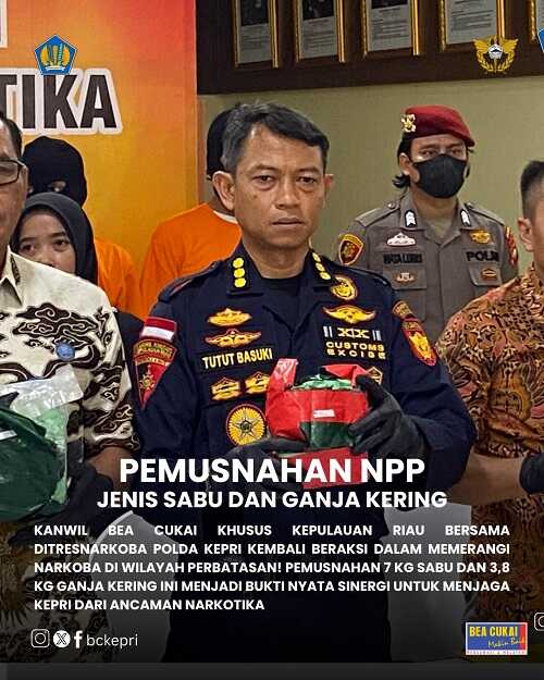 “Pemusnahan ini merupakan bentuk nyata komitmen kami dalam memerangi peredaran narkoba di wilayah Kepulauan Riau, di mana sinergi antara Bea Cukai dan kepolisian menjadi upaya strategis yang harus terus kami tingkatkan,” tegas Tutut Basuki.