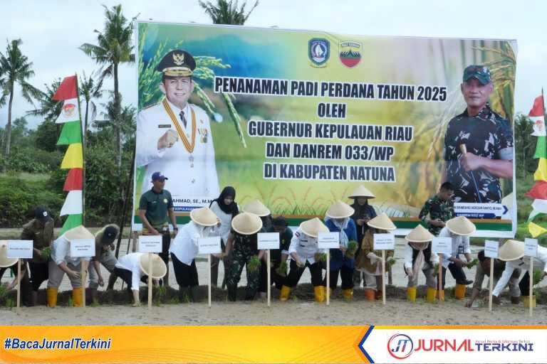 Natuna, JurnalTerkini.id – Gubernur Provinsi Kepulauan Riau, Ansar Ahmad melakukan Penanaman Padi Perdana di Lahan Pertanian Kelompok Tani Cipto Dadi di Kecamatan Bunguran Batubi, Kabupaten Natuna Provinsi Kepulauan Riau, Rabu (12/02/25).