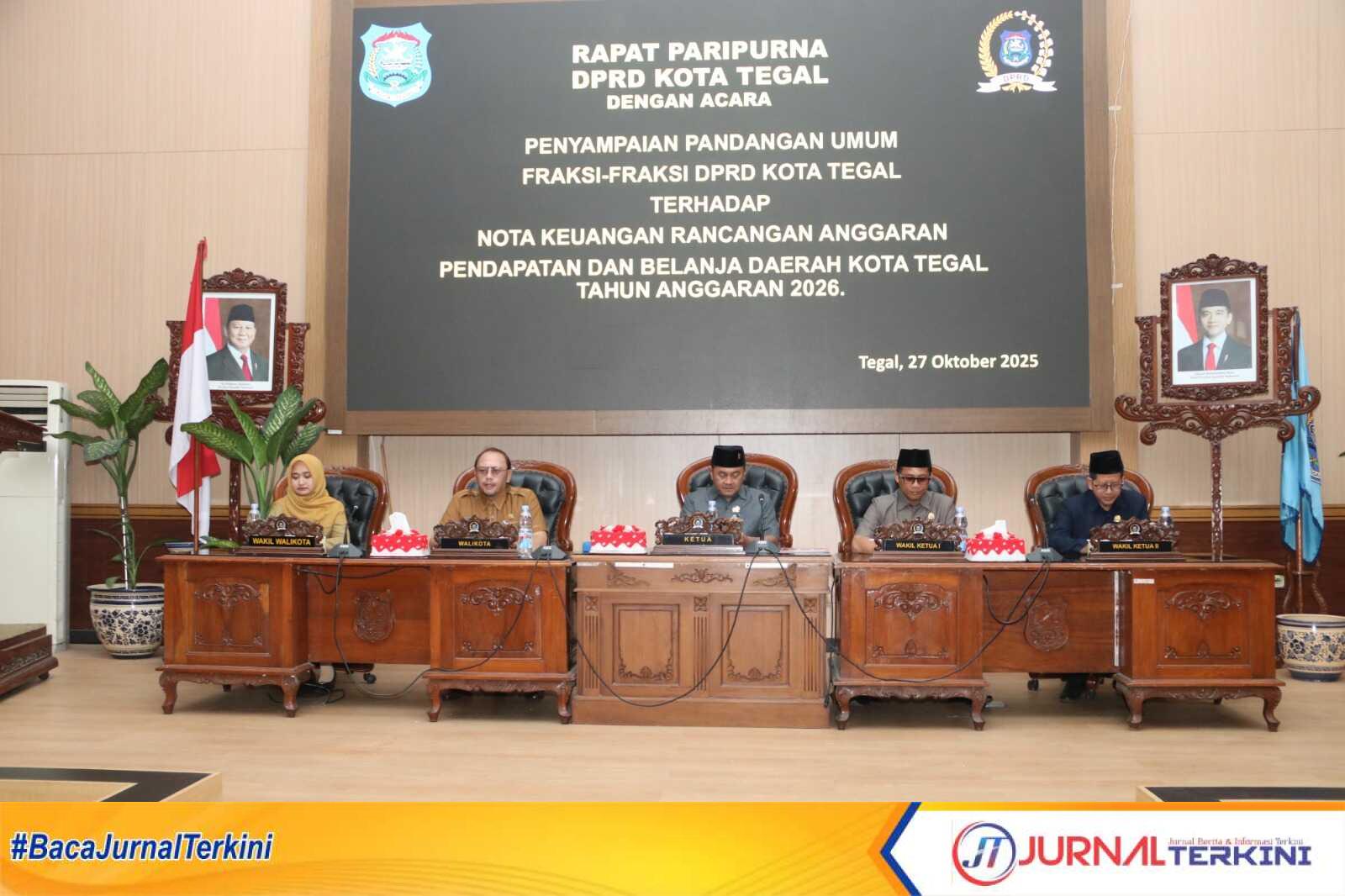 TEGAL, Jurnalterkini.id – Enam Fraksi di Dewan Perwakilan Rakyat Daerah (DPRD) Kota Tegal menyampaikan Pandangan Umum atas Nota Keuangan RAPBD 2026 pada Rapat Paripurna DPRD Kota Tegal berlangsung di Ruang Paripurna, Senin (27/10).